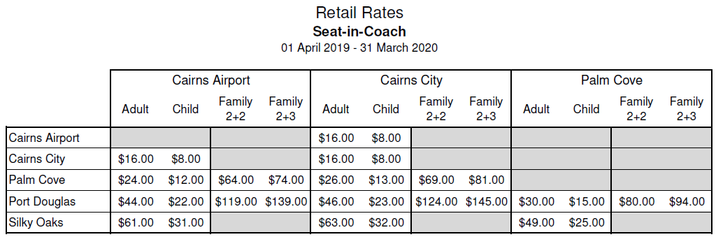 All rates are effective 01 April 2019 until 31st March 2020, are in Australian dollars and are GST inclusive.